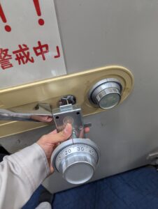 正直、先週現地調査したところ、今回の原因はダイヤル錠の故障では無かったのですが、何十年も使用しているので、ダイヤル錠は交換しておいて欲しいとお客様から要望があったので交換することになりました。