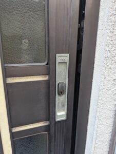 本日は、京都市伏見区で玄関引戸錠(戸先)の鍵交換を行いました。