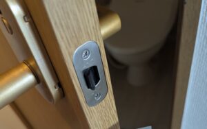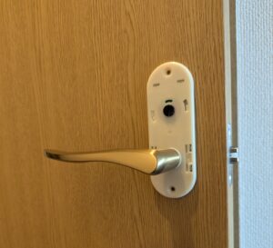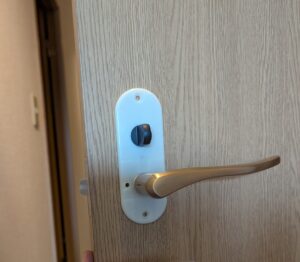 本日は、京都市西京区でトイレのレバーハンドル錠の交換を行いました。